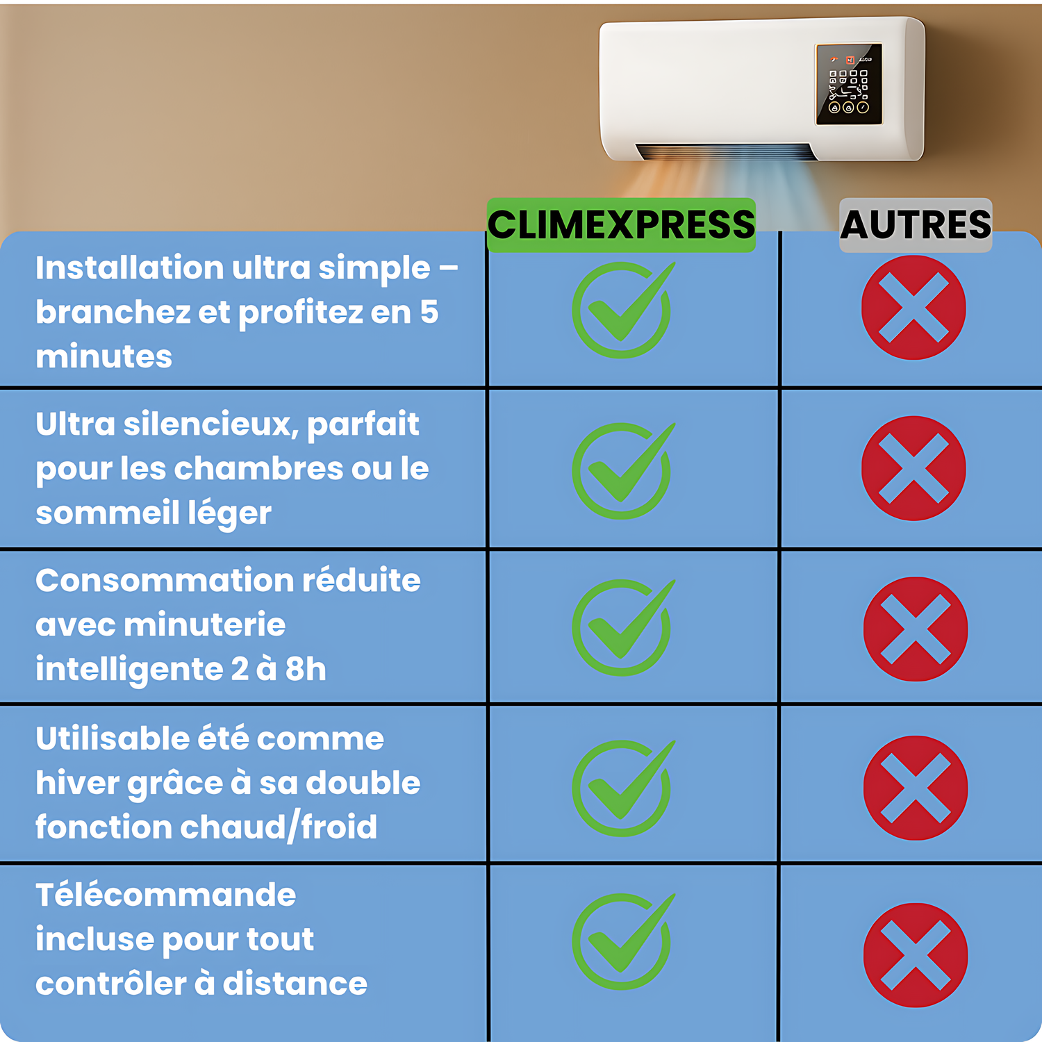 Fini les installations longues, coûteuses ou compliquées. Avec ce climatiseur mural, vous déballez, fixez, branchez, et profitez immédiatement d’un air frais ou chaud selon la saison.